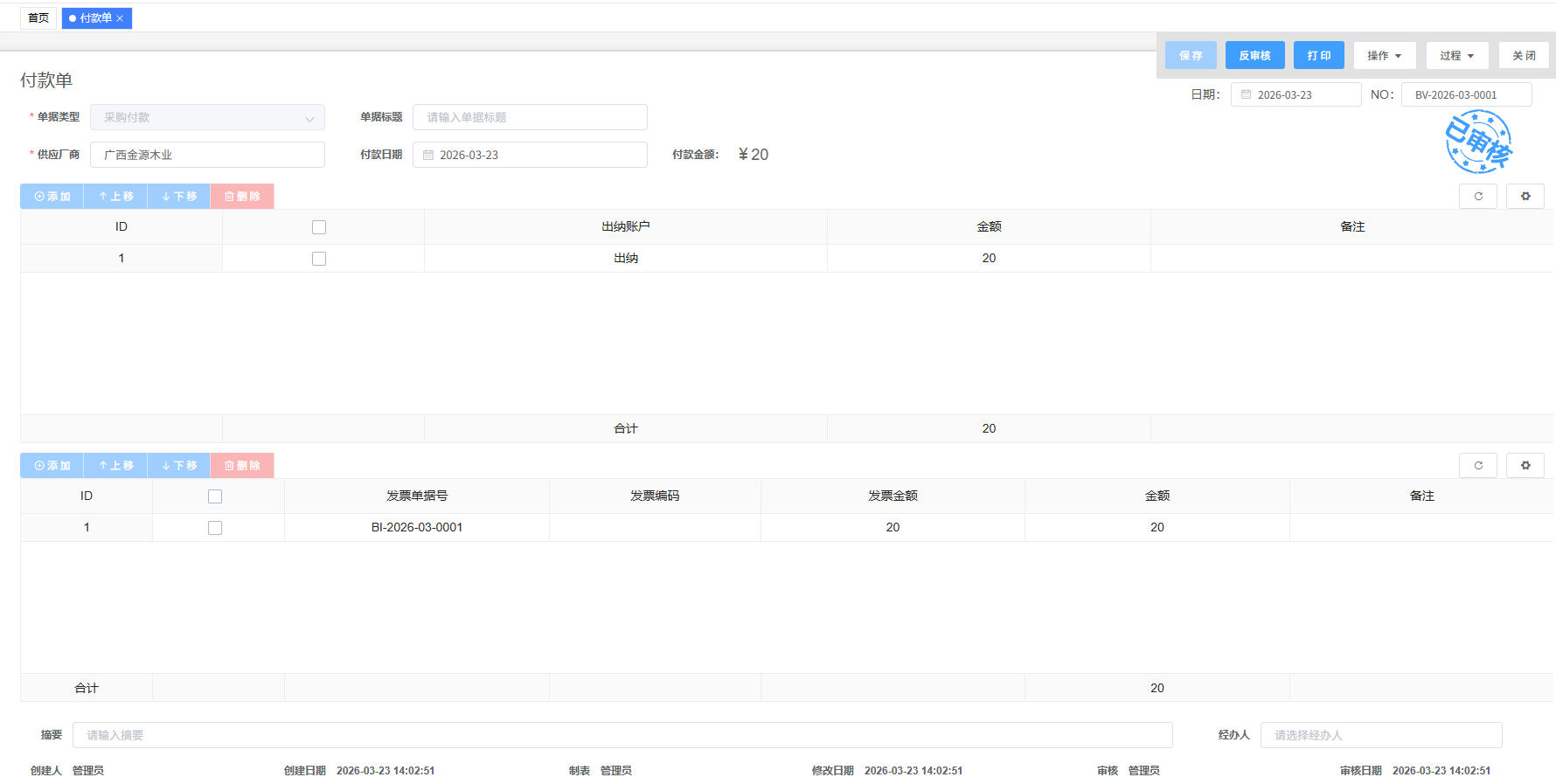 付款单