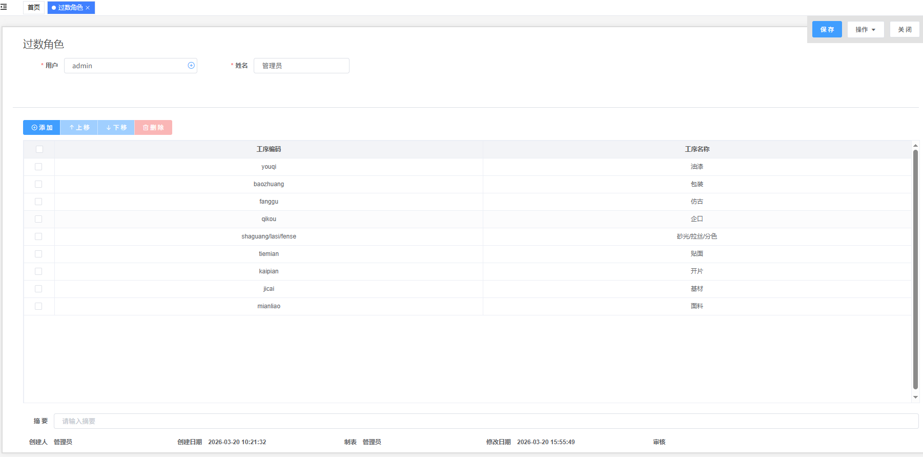 输入:点击上方“添加”,选择“用户(账号)”,下方选择“添加”勾选所需要的“生产工序“(过数需要)