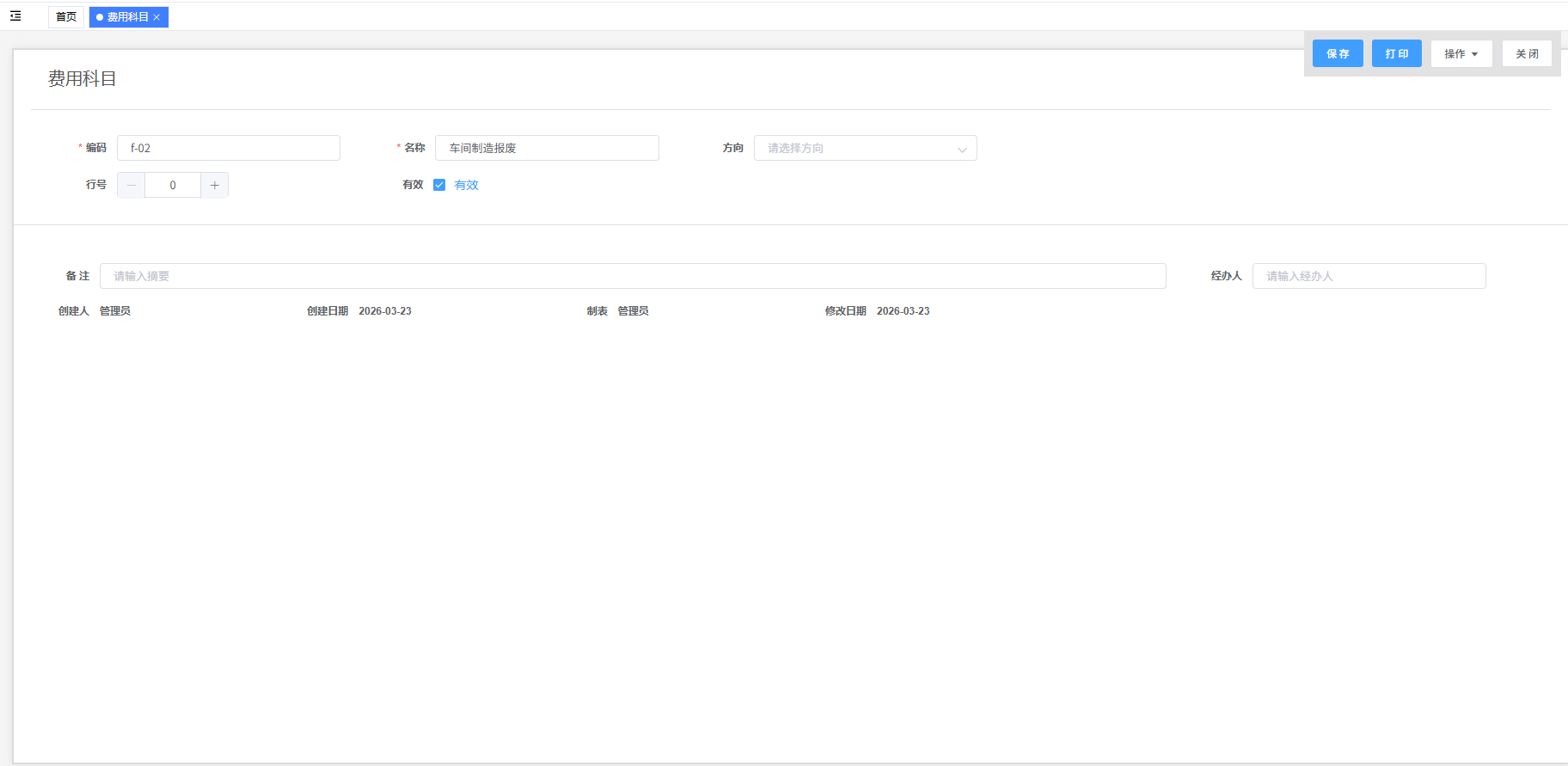 路径:“财务”模块下的“费用科目”