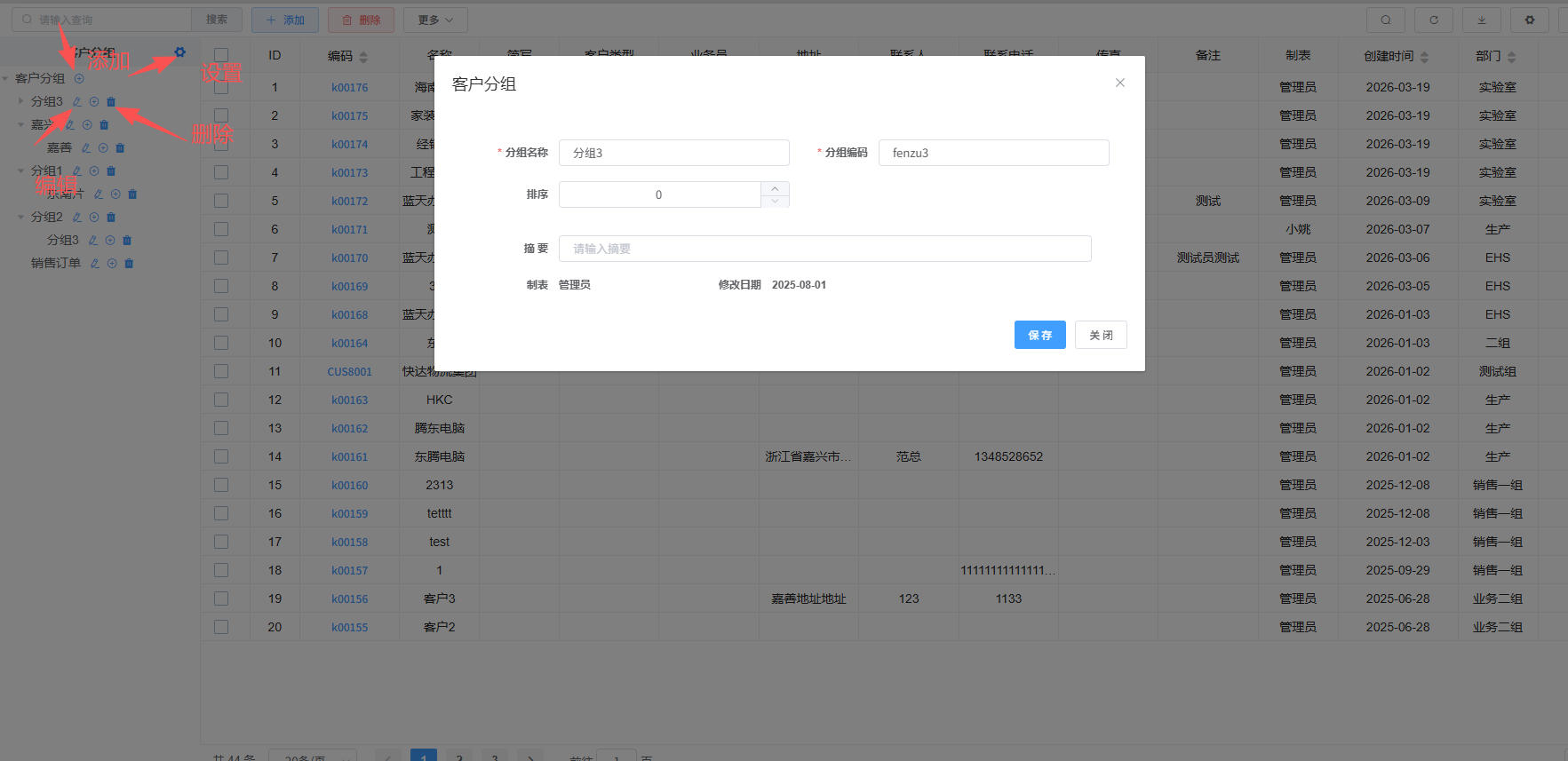 - 输入:在左边栏点击“图标”,可进行“添加”和“编辑”,填写“分组名称”和“分组编码”即可