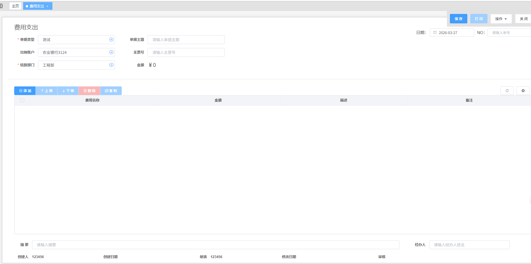 路径:“财务”模块下的“费用支出”