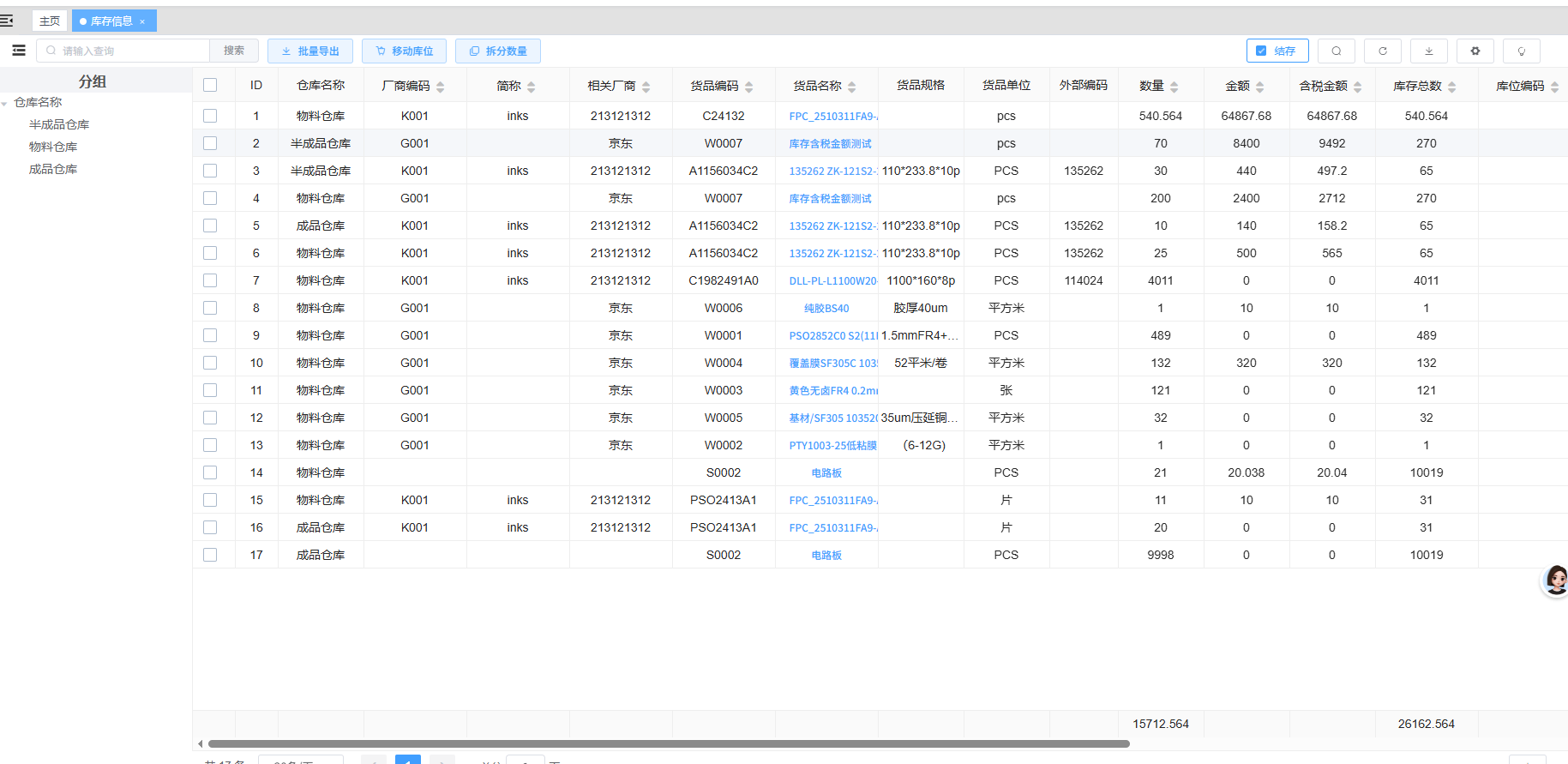 路径:“仓库”模块下的“库存查询”
