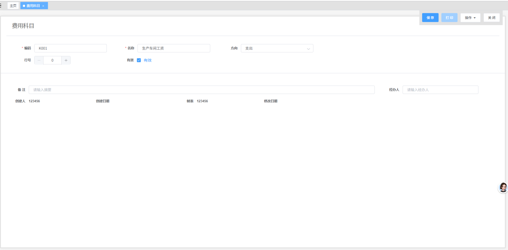 引用自财务模块的会计科目表,用于定义和归类各项费用支出,是费用核算和分析的基础。