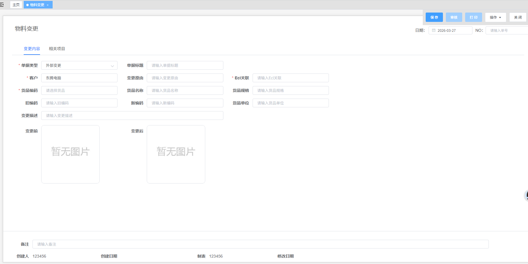 - 确认:点击下方“保存”,单据建立完成